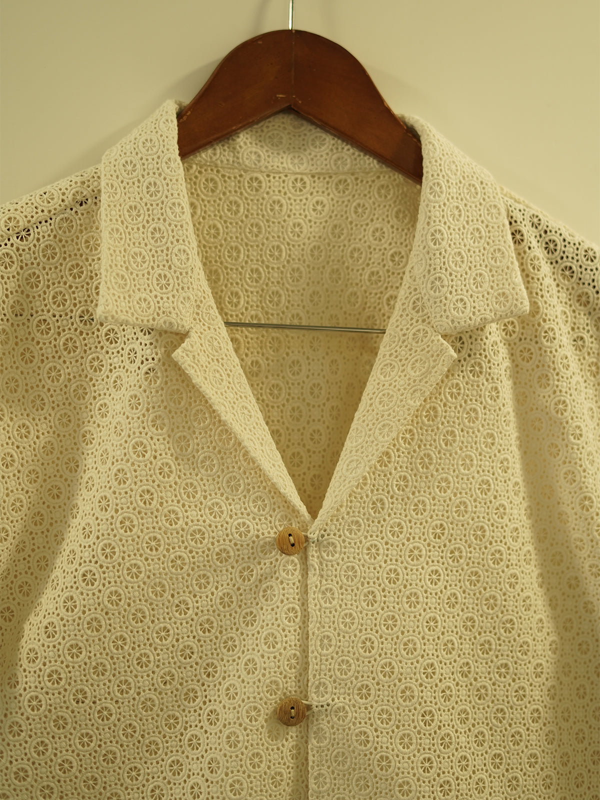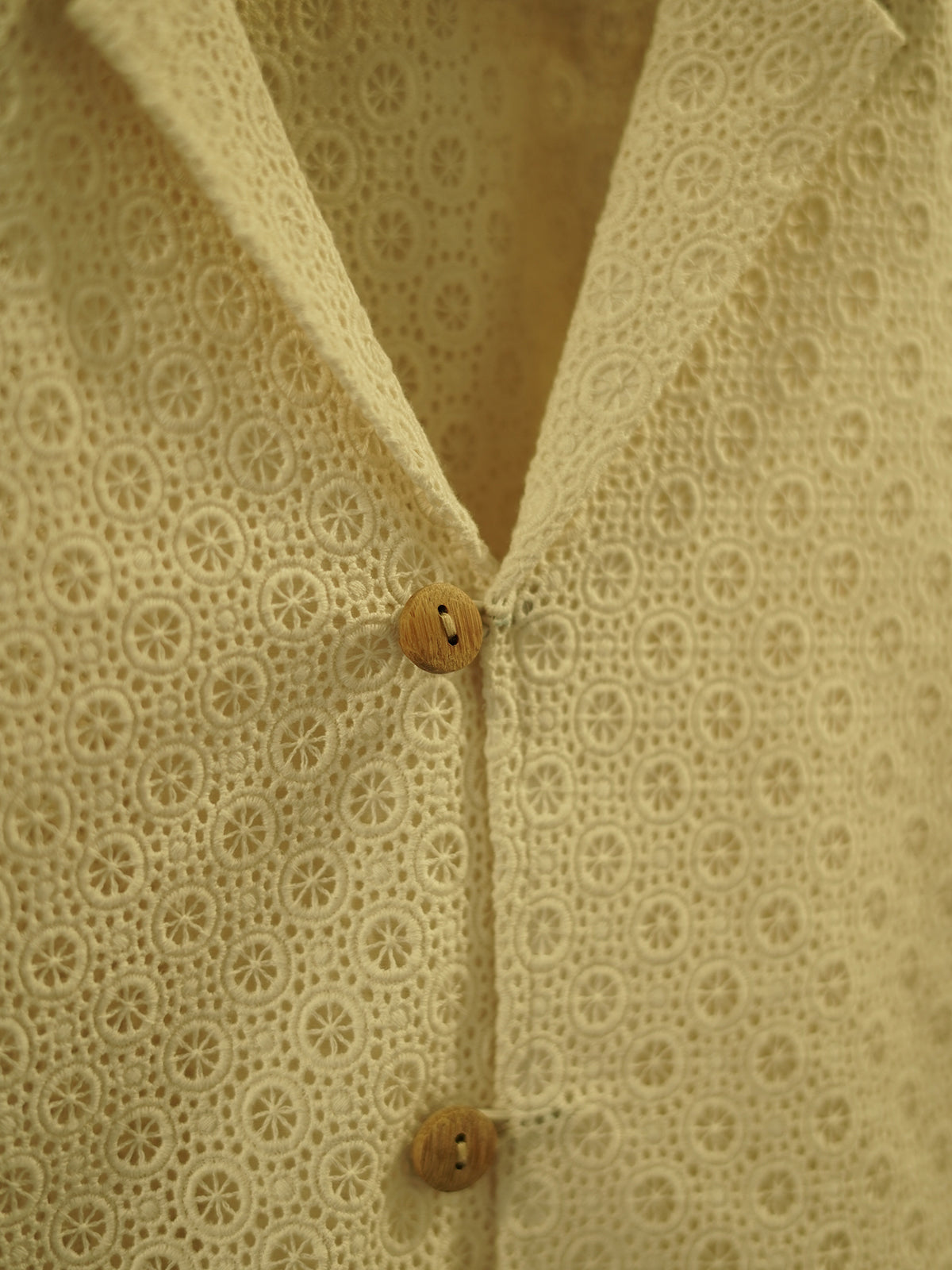 Finished with wooden buttons and unlined sleeves that let the lace breathe, this piece is equal parts soft nostalgia and loud joy.